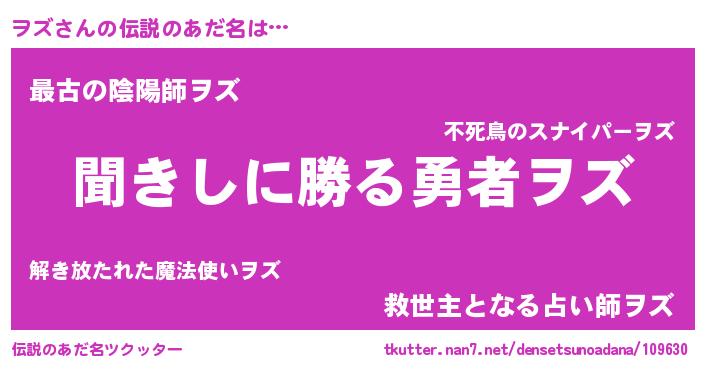 | 男性向けラノベタイトル風あだ名 | 『ヲズスレイヤー』『魔法科高校のヲズ』 |
