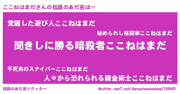 | 意味不明あだ名 | 『永久保存ここねはまだ』 |