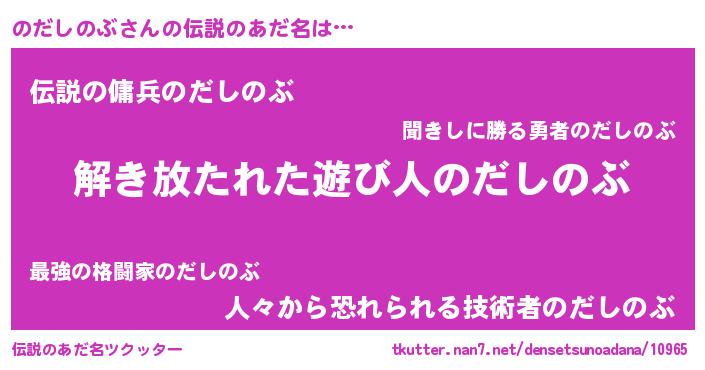 | 意味不明あだ名 | 『自称のだしのぶ』『ペロリンのだしのぶ』 |