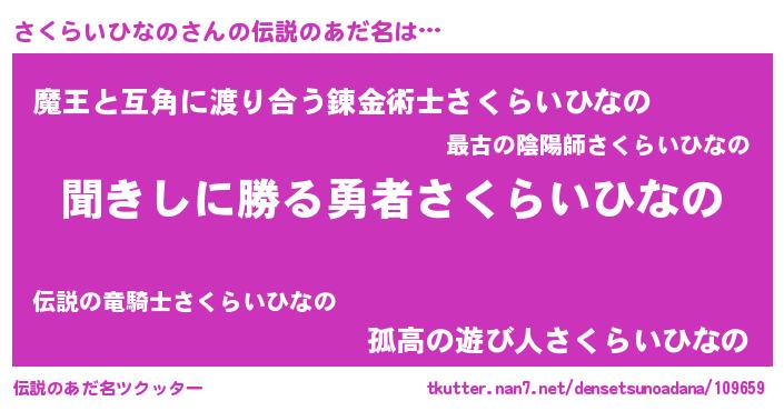 | 意味不明あだ名 | 『しいたけ科さくらいひなの属』 |