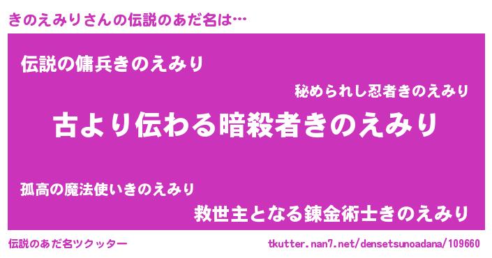 | 意味不明あだ名 | 『住所不定無職きのえみり(39歳)』 |