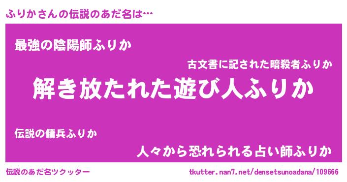 | ヒーロー風カッコイイあだ名 | 『銀牙騎士フリ』『ウルトラふりかマン』 |