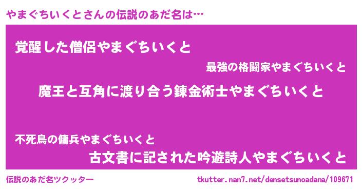| 男性向けラノベタイトル風あだ名 | 『転生したらやまぐちいくとだった件』 |