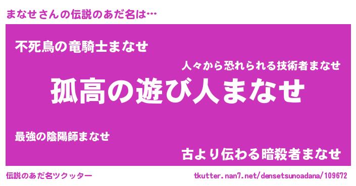 | 男性向けラノベタイトル風あだ名 | 『緋弾のマナセ』『はたらくまなせさま!』 |