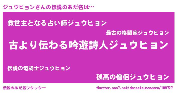| 意味不明あだ名 | 『自称ジュウヒョン』 |