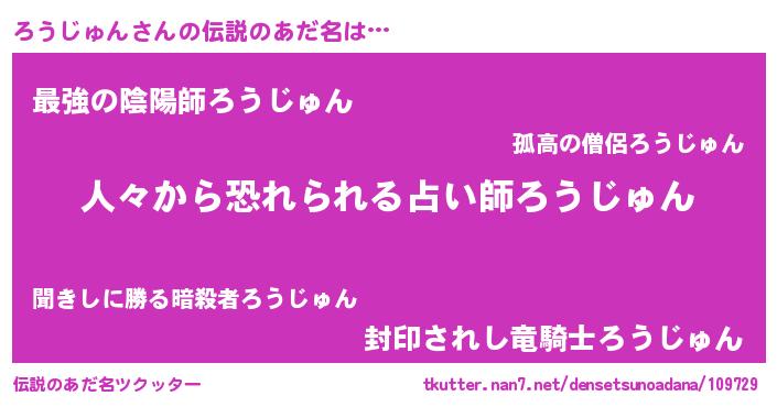 | ヒーロー風カッコイイあだ名 | 『正義の使者ろうじゅん』『暗黒騎士ロウ』 |