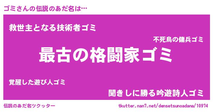 | 男性向けラノベタイトル風あだ名 | 『転生したらゴミだった件』 |