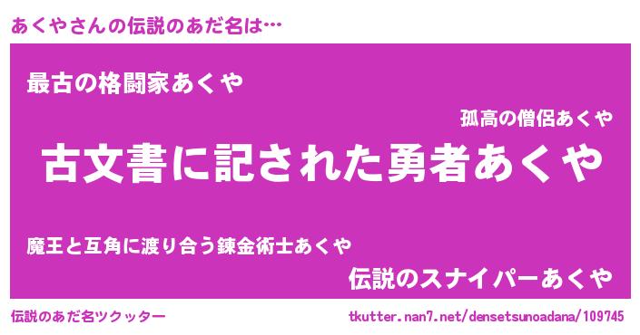 | 意味不明あだ名 | 『永久保存あくや』『あくやフォーエバー』 |