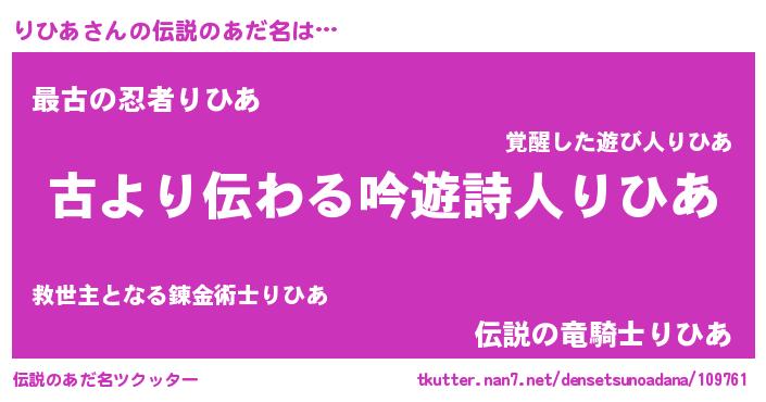 | ファンタジー風あだ名 | 『リヒディッシュ』『エターナルリヒアー』 |