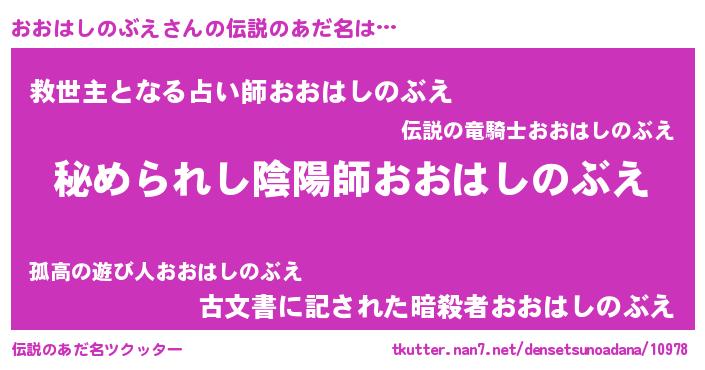 | ヒーロー風カッコイイあだ名 | 『ウルトラおおはしのぶえマン』 |