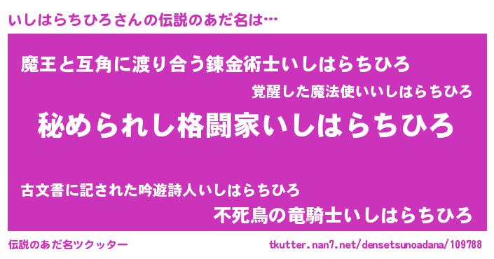 | ファンタジー風あだ名 | 『エターナルイシハラチヒロー』 |