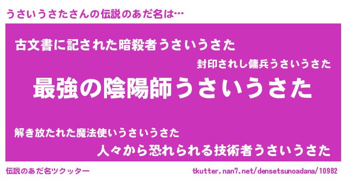 | ヒーロー風カッコイイあだ名 | 『ウルトラうさいうさたマン』 |