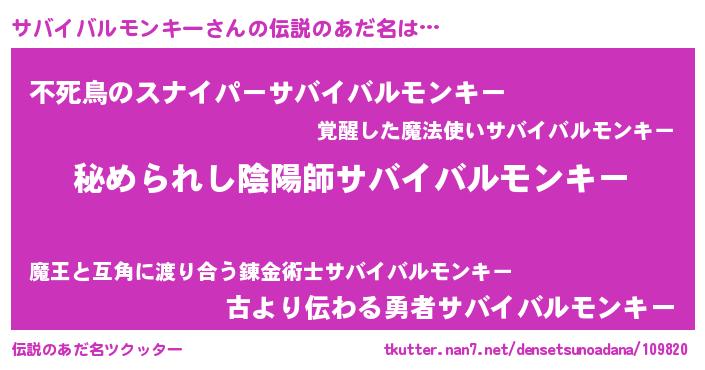 | ファンタジー風あだ名 | 『エターナルサバイバルモンキーー』 |