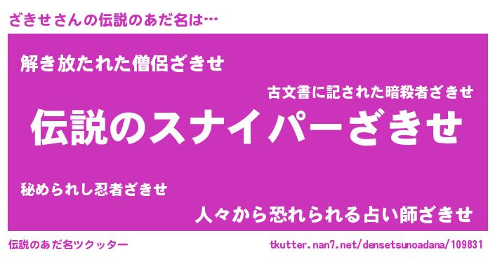 | 胡散臭い通販商品みたいなあだ名 | 『必ず成功する霊験あらたかなお札…その名も「ざきせ」』 |