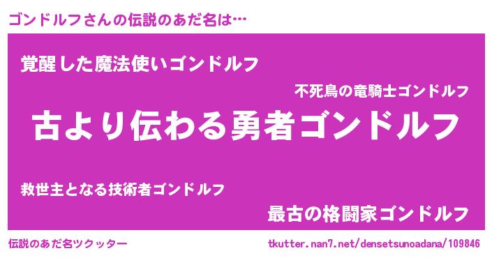 | 意味不明あだ名 | 『永久保存ゴンドルフ』『自称ゴンドルフ』 |