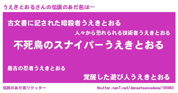 | 男性向けラノベタイトル風あだ名 | 『ウエキトオルアートオンライン』 |