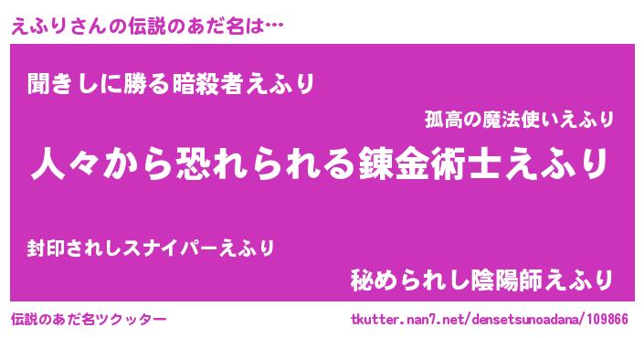 | ヒーロー風カッコイイあだ名 | 『友情の使者えふり』『ネオエフリ』 |