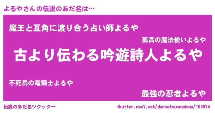 | 意味不明あだ名 | 『住所不定無職よるや(10歳)』『自称よるや』 |