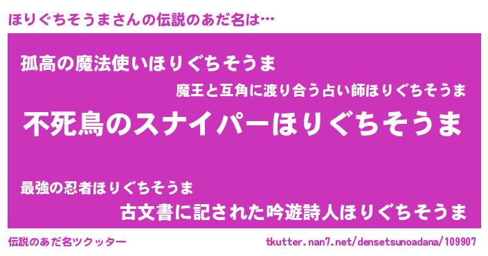 | ポケモン風あだ名 | 『ホリチュウ』『ヒホリグチソウマ』 |