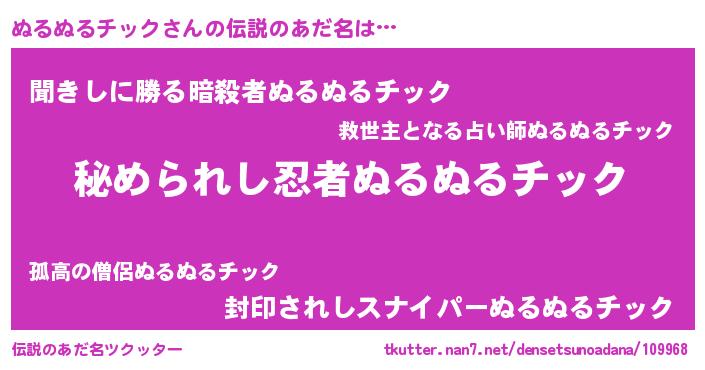 | ヒーロー風カッコイイあだ名 | 『ウルトラぬるぬるチックマン』 |