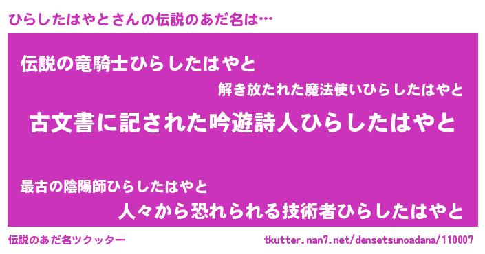 | 意味不明あだ名 | 『永久保存ひらしたはやと』 |