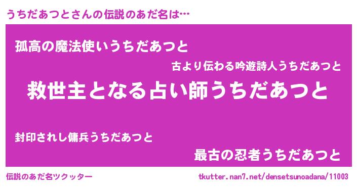 | 男性向けラノベタイトル風あだ名 | 『ノーゲーム・ノーウチダアツト』 |