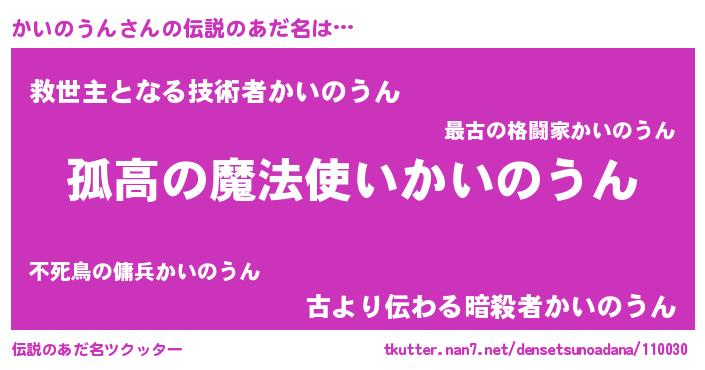 | 胡散臭い通販商品みたいなあだ名 | 『ガンによく効く高麗人参…その名も「かいのうん」』 |