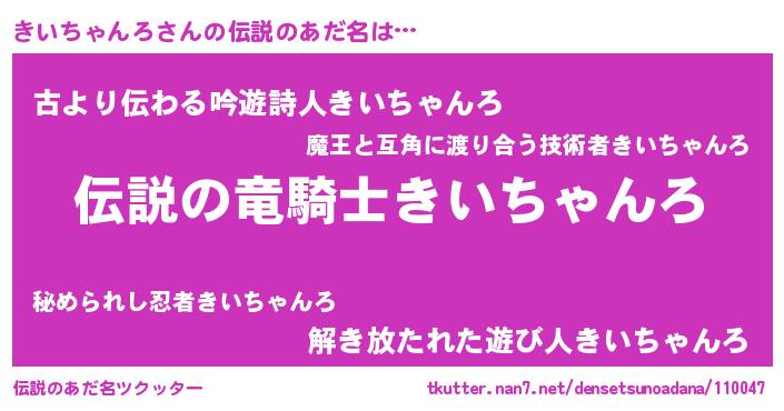 ヒーロー風カッコイイあだ名 | 『スーパーキイチャンロ』『幻影騎士キイ』 |