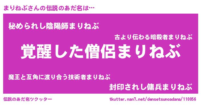 | 意味不明あだ名 | 『とにかく怪しいまりねぶ』 |