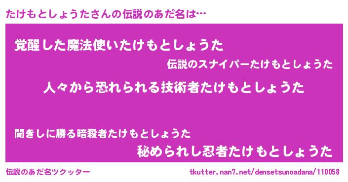 | 胡散臭い通販商品みたいなあだ名 | 『100人中100人が認めたマグネット磁石…その名も「たけもとしょうた」』 |