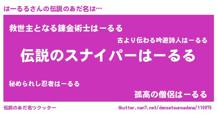 | 意味不明あだ名 | 『ペロリンはーるる』『自称はーるる』 |