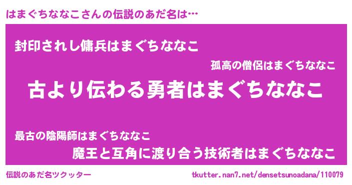 | 女子向けラノベタイトル風あだ名 | 『はまぐちななこの契約王妃』 |