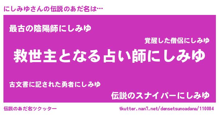 | 欧米人風あだ名 | 『にしみゆ・ステッグマイヤー』 |