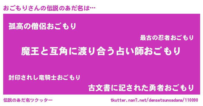 | 男性向けラノベタイトル風あだ名 | 『はたらくおごもりさま!』 |