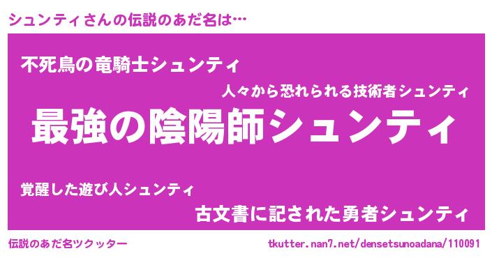| 男性向けラノベタイトル風あだ名 | 『うちの娘の為ならば、俺はもしかしたらシュンティも倒せるかもしれない。』 |