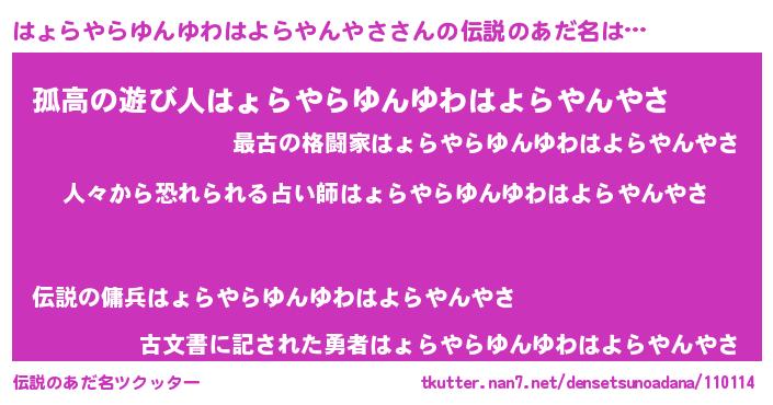 | 男性向けラノベタイトル風あだ名 | 『はたらくはょらやらゆんゆわはよらやんやささま!』 |