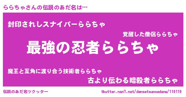 | ヒーロー風カッコイイあだ名 | 『ウルトラららちゃマン』『仮面ララダー』 |