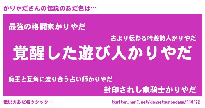 | 意味不明あだ名 | 『住所不定無職かりやだ(74歳)』 |