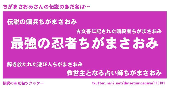 | ヒーロー風カッコイイあだ名 | 『最強戦士チガマサオミ』『仮面チガダー』 |