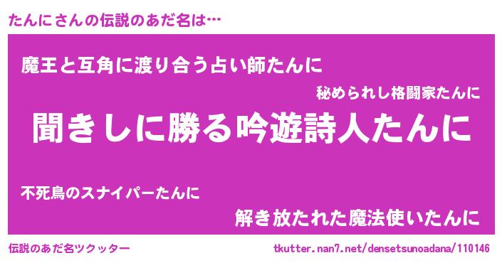 | 男性向けラノベタイトル風あだ名 | 『たんにという概念が存在しない退屈な世界 』 |