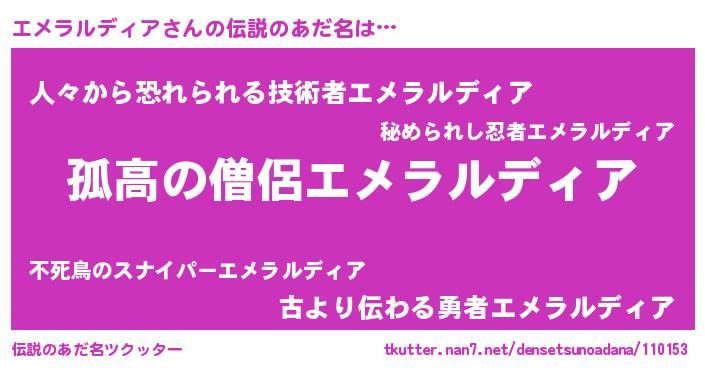 | 胡散臭い通販商品みたいなあだ名 | 『信頼と実績のネックレス…その名も「エメラルディア」』 |