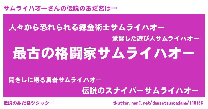 | 意味不明あだ名 | 『住所不定無職サムライハオー(10歳)』 |