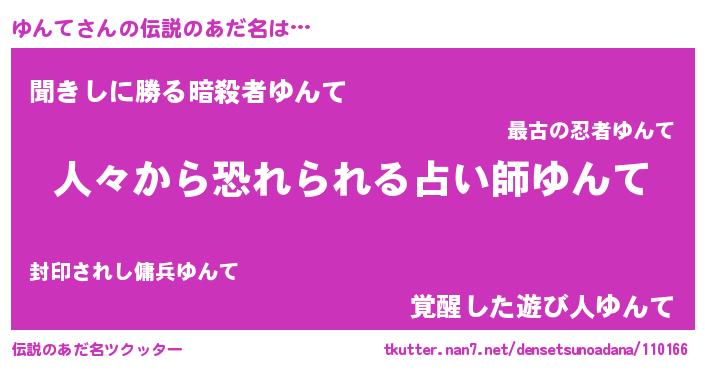 | 意味不明あだ名 | 『住所不定無職ゆんて(39歳)』『自称ゆんて』 |