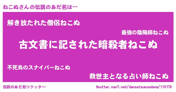 | ヒーロー風カッコイイあだ名 | 『仮面ネコダー』『ネオネコヌ』 |