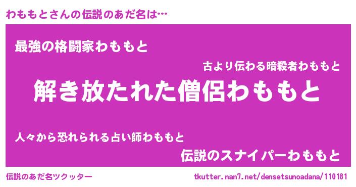 | ヒーロー風カッコイイあだ名 | 『幻影騎士ワモ』『究極戦士ワモモト』 |