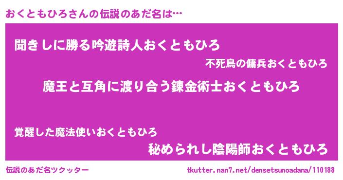 | 男性向けラノベタイトル風あだ名 | 『この素晴らしい世界におくともひろを!』 |
