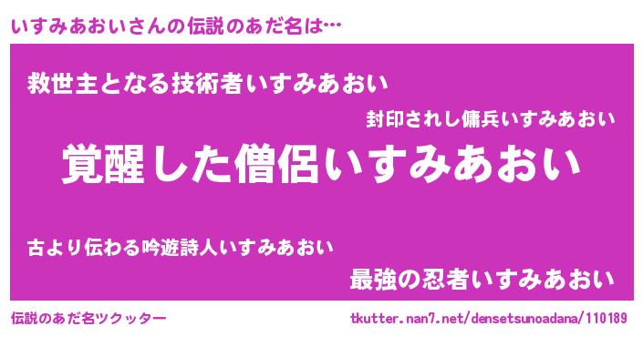 | 男性向けラノベタイトル風あだ名 | 『いすみあおいの嫁は女の子じゃないと思った?』 |