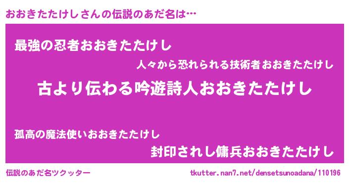 | 女子向けラノベタイトル風あだ名 | 『おおきたたけしアンティーク』 |