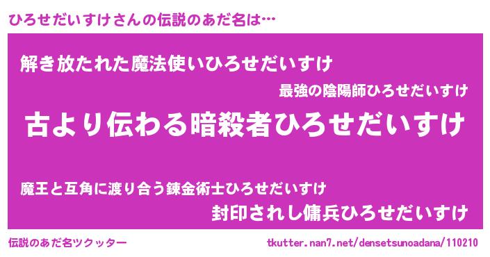 | 意味不明あだ名 | 『永久保存ひろせだいすけ』 |