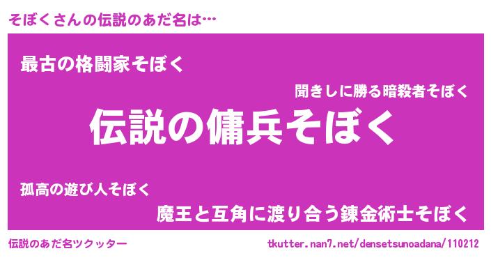 | 女子向けラノベタイトル風あだ名 | 『そぼくなんてお断りですっ。』 |